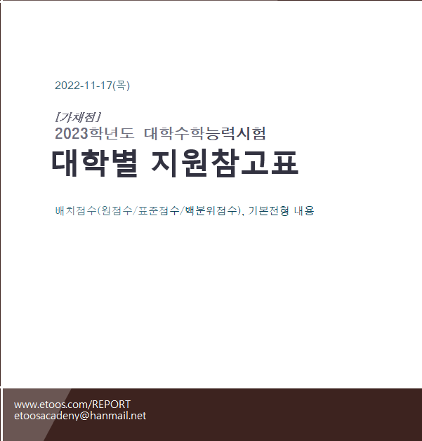 | [실채점] 2023학년도 수능 상위누적 백분위 및 지원참고표(feat.이투스) (0) | 2022.12.09 |