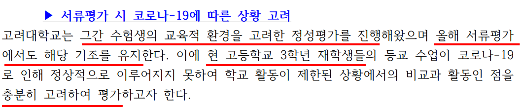 2. 서류 평가 시 정성 평가 유지, 재학생들의 비교과 활동 상황을 충분히 고려하여 평가