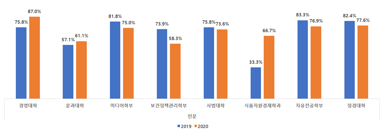 이에 따라 실질경쟁률(면접 응시자 중 수능최저학력기준 충족자 / 선발인원)은 평균적으로 최종경쟁률의 30 ~ 80% 수준이었습니다만 평균적으로는 인문계 70%내외, 자연계 50%내외의 결과로 나타났었습니다.
