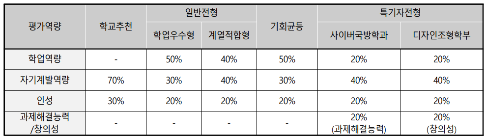 <2021학년도 고려대학교 서류평가역량 반영 비중>