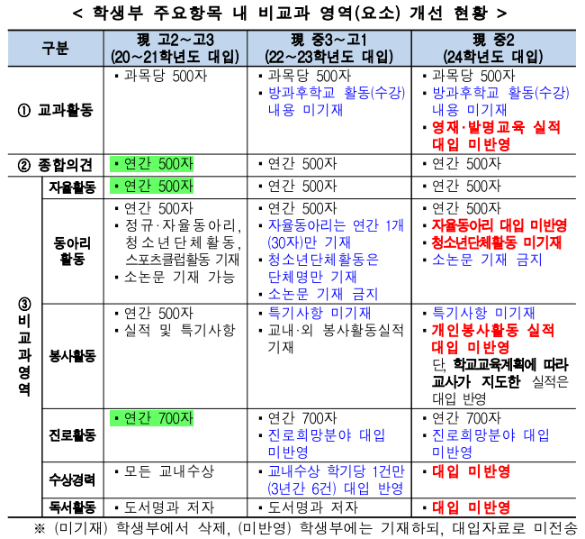 2019년 발표된 대입공정성 강화방안에 따라 학생부 평가 시 반영 되는 학생부의 평가 항목이 대폭 축소되었습니다.