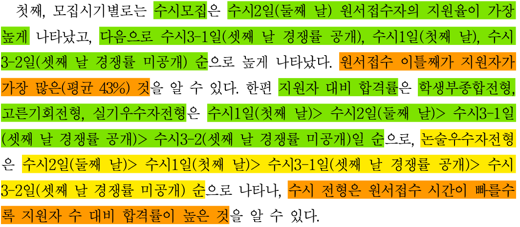 그럼에도 불구하고 수험생들은 경쟁률에 대한 자료를 필요로 할 것 같아 이투스에듀에서 공개한 최근 3개년 수시 경쟁률 자료를 공유합니다. 전년도 경향등을 참고하시되 앞에 올려드린 논문의 내용도 잘 고려하시어 올해 수시 지원 시 활용하시기 바랍니다.